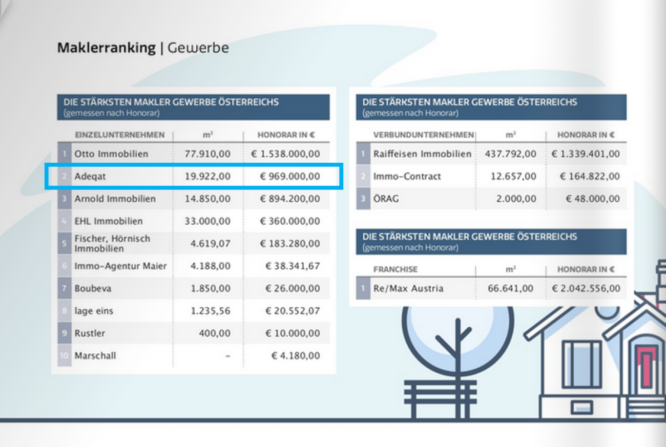 Wir freuen uns über den 2. Platz in der Kategorie Gewerbe im österreichischen Maklerranking, das der Immoflash veröffentlicht hat. Wir danken unseren Geschäftspartnern und Kunden für ihr Vertrauen, das sie uns im vergangenen Jahr entgegengebracht haben und freuen uns auf weitere gemeinsame Projekte.