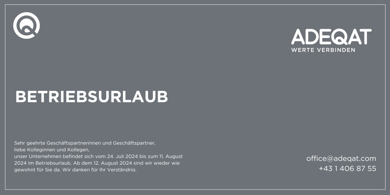 Unser Unternehmen befindet sich vom 24.07.2024 bis 11.08.2024 im Betriebsurlaub.